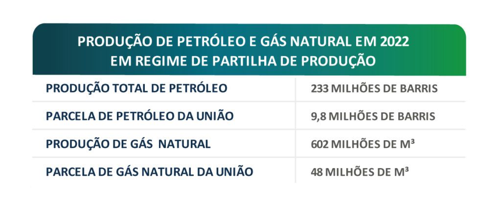 A produção de petróleo em contratos de partilha de produção em 2022 foi quase quatro vezes maior do que a registrada no ano anterior. De acordo com informações da Pré-Sal Petróleo (PPSA), foram produzidos 233 milhões de barris de petróleo por sete contratos, contra 62 milhões de barris em 2021. Deste total, 9,8 milhões de barris foram destinados à União. A produção neste regime foi iniciada no final de 2017 na então Área de Desenvolvimento de Mero e desde então vem mantendo um ritmo de crescimento acelerado. O pico de produção está previsto para ocorrer em 2030, de acordo com estudo da PPSA.